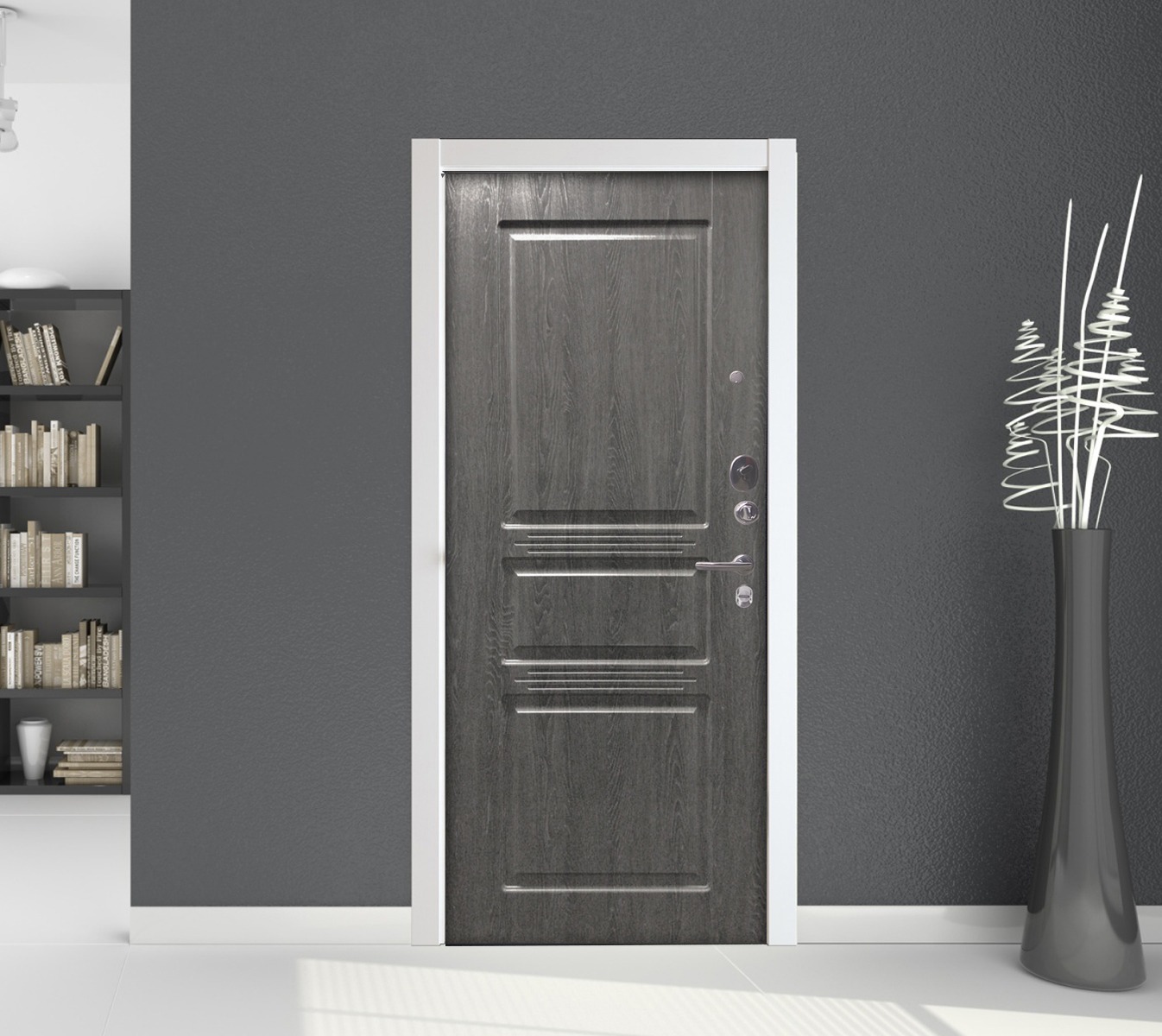 Толщина полотна — до 112 мм, Закрытая, утепленная, гнуто-сварная профильная коробка с усилением в зоне ригелей, противосъемные штыри, три контура уплотнения, опция «мягкое закрывание» (магнитный уплотнитель и 2 дополнительных резиновых изоляционных контура), эксцентрик, проклейка Изолоном.