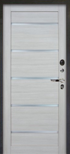 Ночная задвижка. ЗАЩИТА ОТ ВЫСВЕРЛИВАНИЯ. Замковая зона усилена 6 листами металла, общей толщиной 1 см. Ответная часть замковой зоны усилена СТАЛЬНЫМ ШВЕЛЛЕРОМ, что сводит к минимуму попытки вскрытия двери методом отжима. 2 СПЕЦИАЛЬНЫХ АРМИРОВАННЫХ ПРУТА внутри конструкции надёжно защитят дверь от вскрытия килечным ножом.